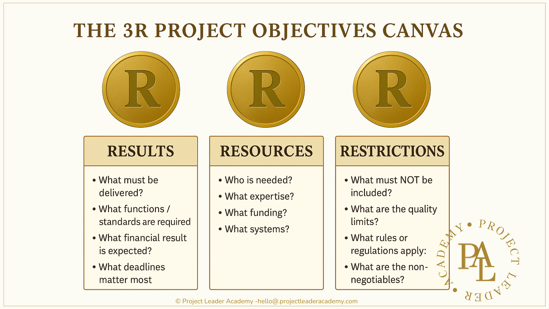 The 3R Project Objectives Canvas — a clear, elegant way to define what truly matters before planning begins.